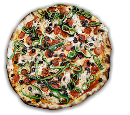 pepperoni, fresh mushrooms, poblano peppers, kalamata